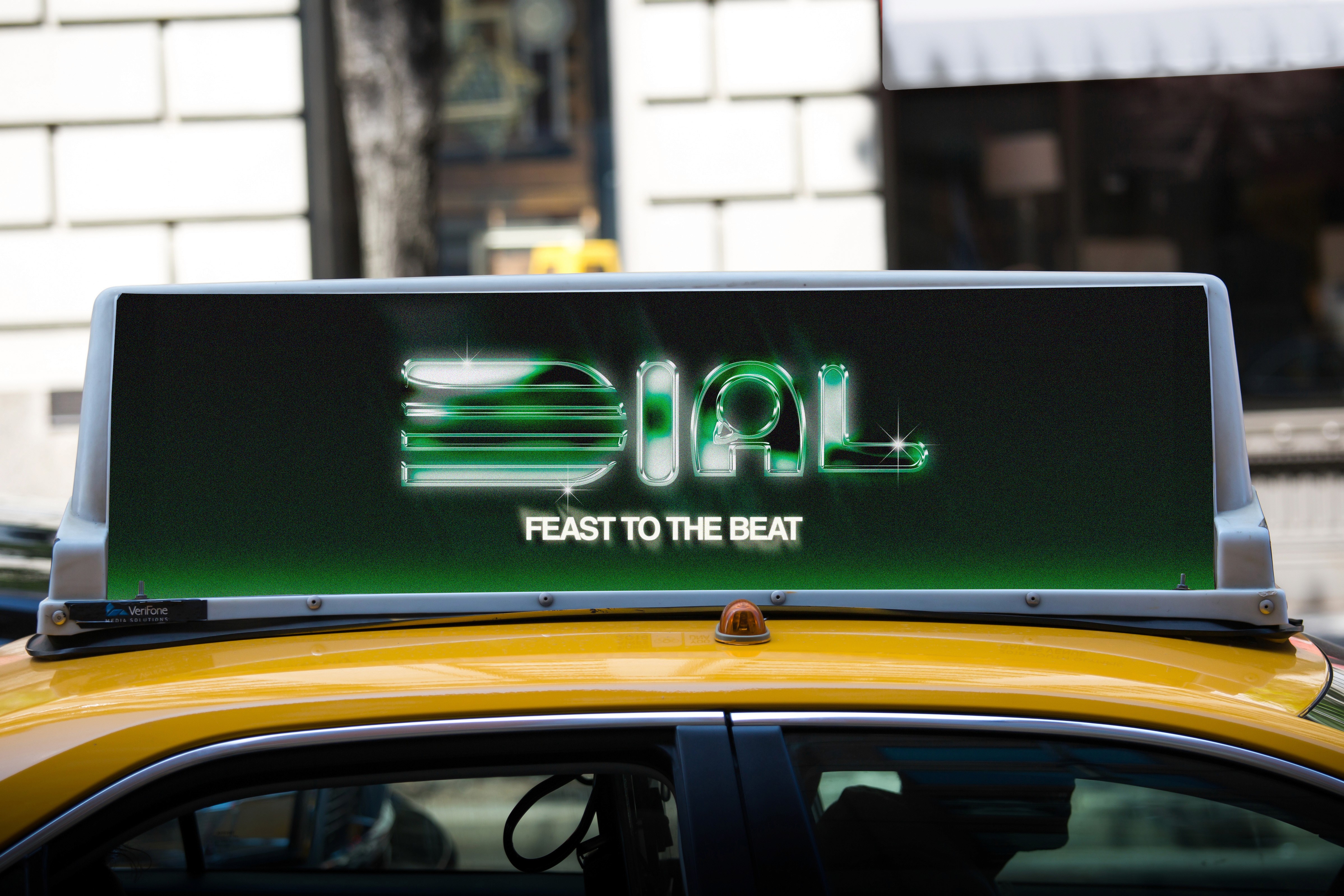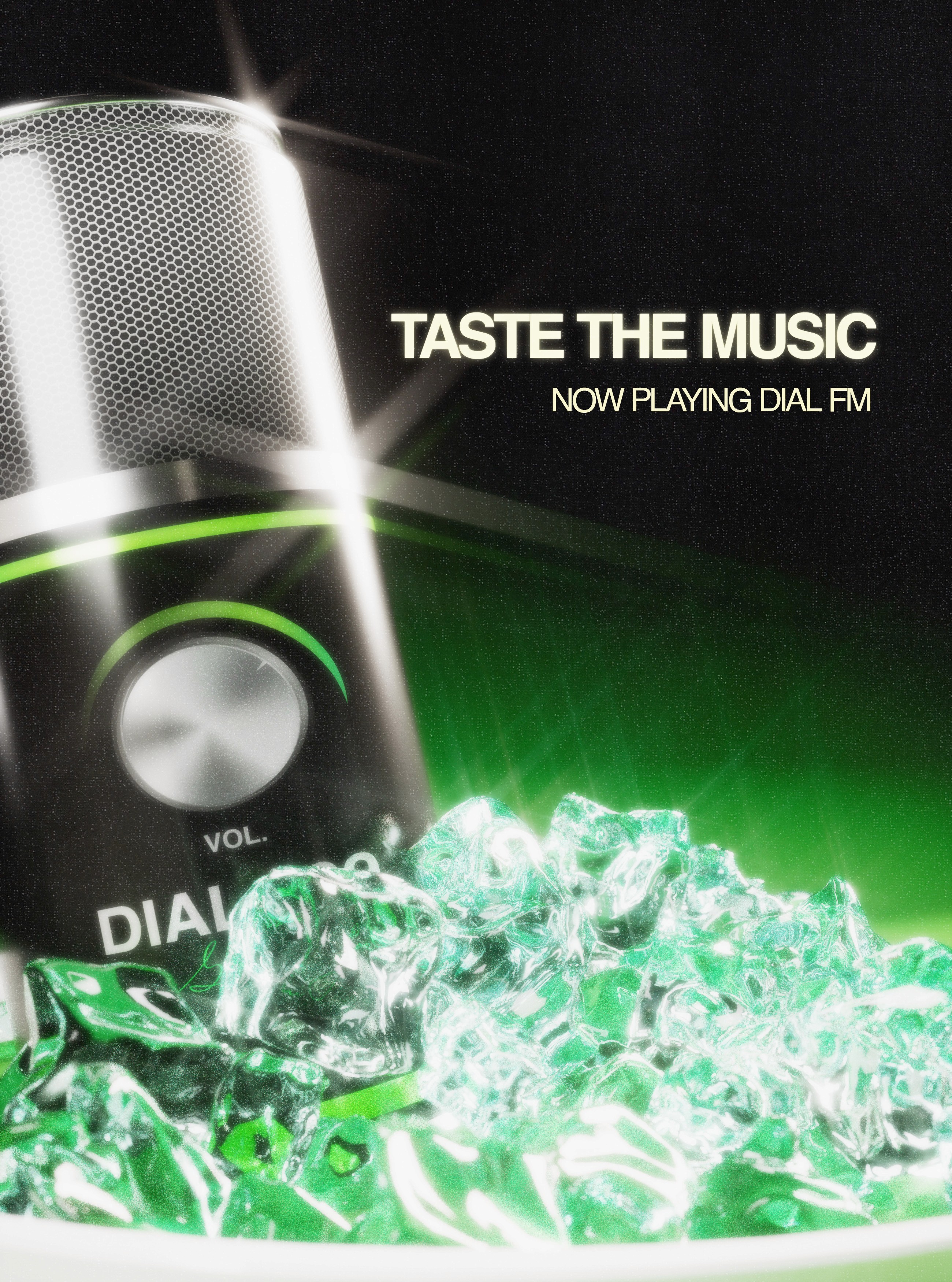 Because of Dial FM’s personal commitment to keeping an approach of 2000s likeness within the brand. Most of the mockups along with the advertisement have a similar style to that of food advertisements within the era. The bus stop poster is the perfect example of this showcasing a personalized alcoholic drink can that can be purchased as a to-go order, with the gimmicky slogan of “Taste The Music” and “Now Only Playing At Dial Fm” to highlight the radio aspect of brand. Another additional advertisement can also be seen on taxis with a Logo Variation of Dial and the added slogan “Feast to the Beat” with a glowy blur to match the scenes of the Logo. Additional content of advertisement can also be seen on the restaurant’s own Instagram account, with features of merchandise and food.