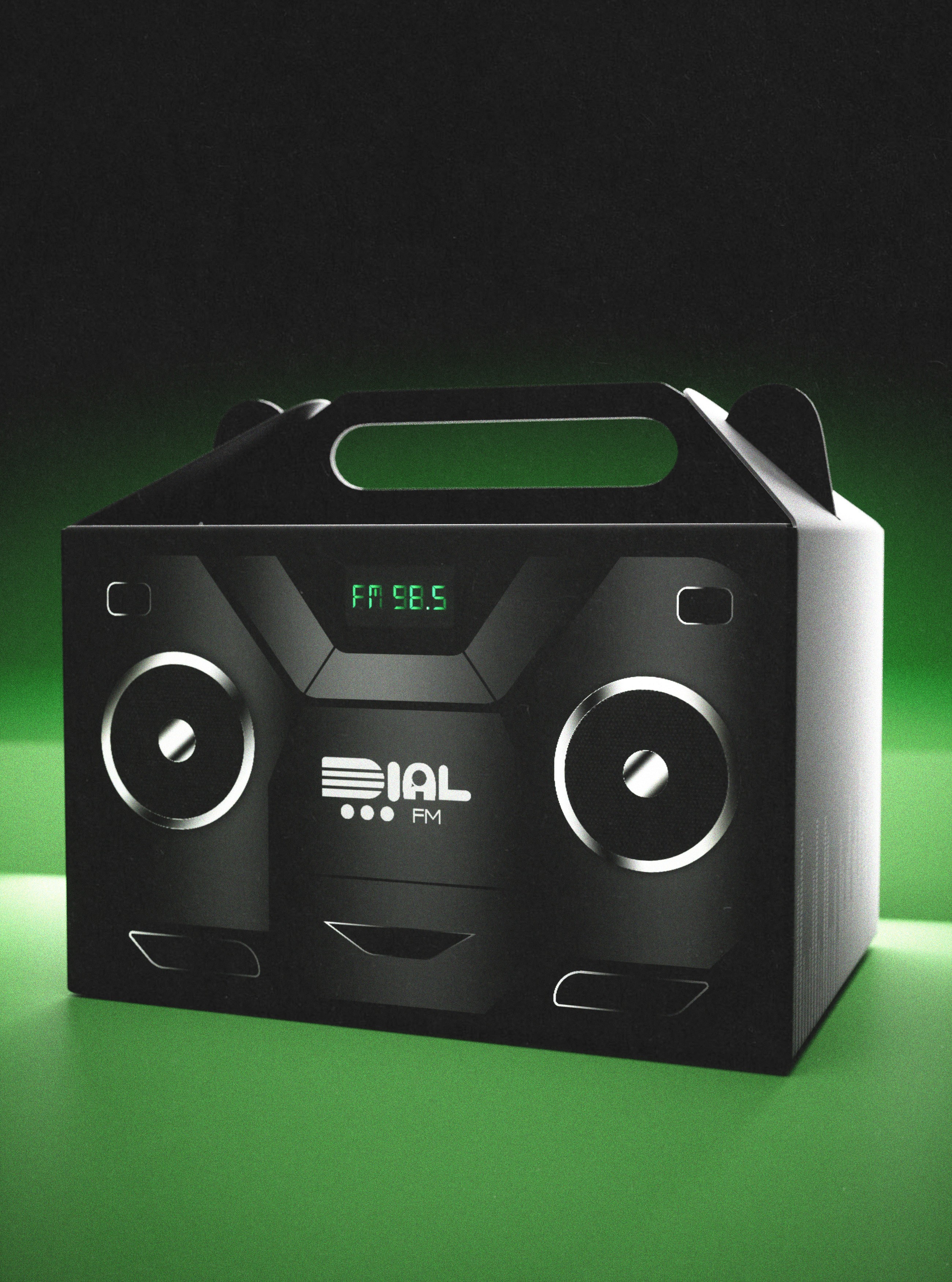 Created in Blender using Octane’s Render Engine, Dial FM packaging is unique as it showcases various elements that make up the restaurant message of sending a musical atmosphere while enjoying delicious plates of food. While also keeping the radio station element of the Dial’s brand in Pick Up Packaging, which patrons can get from ordering online.