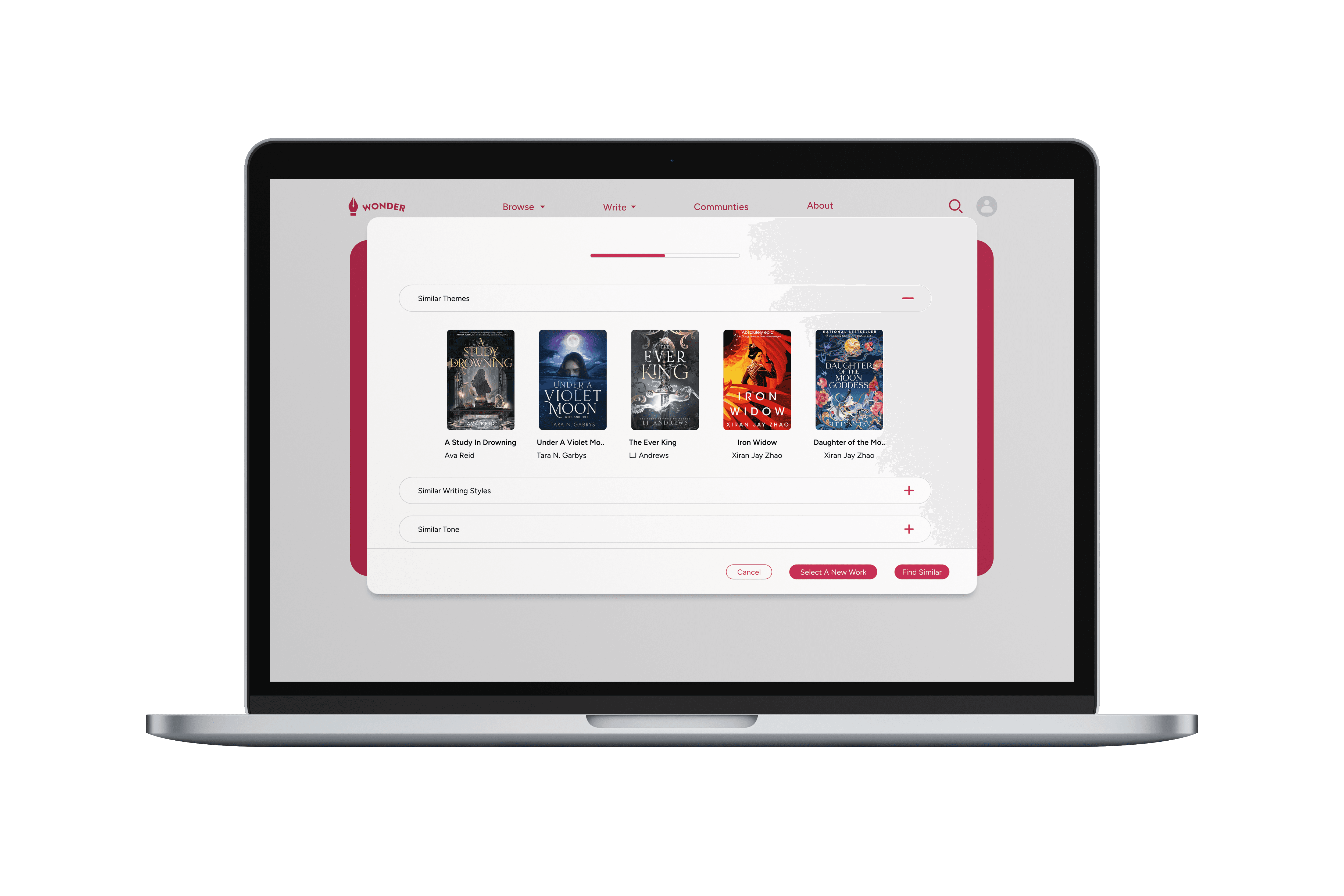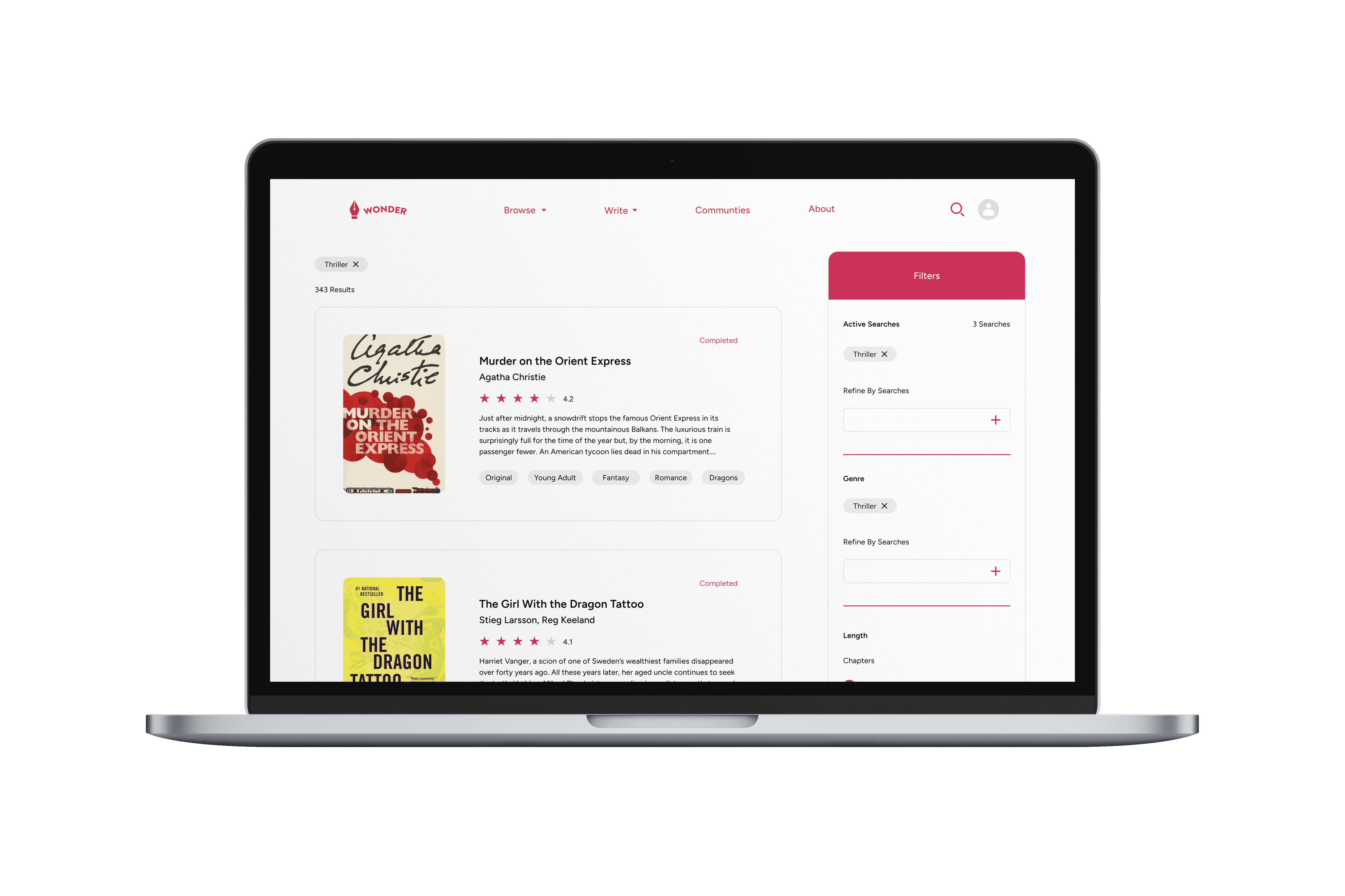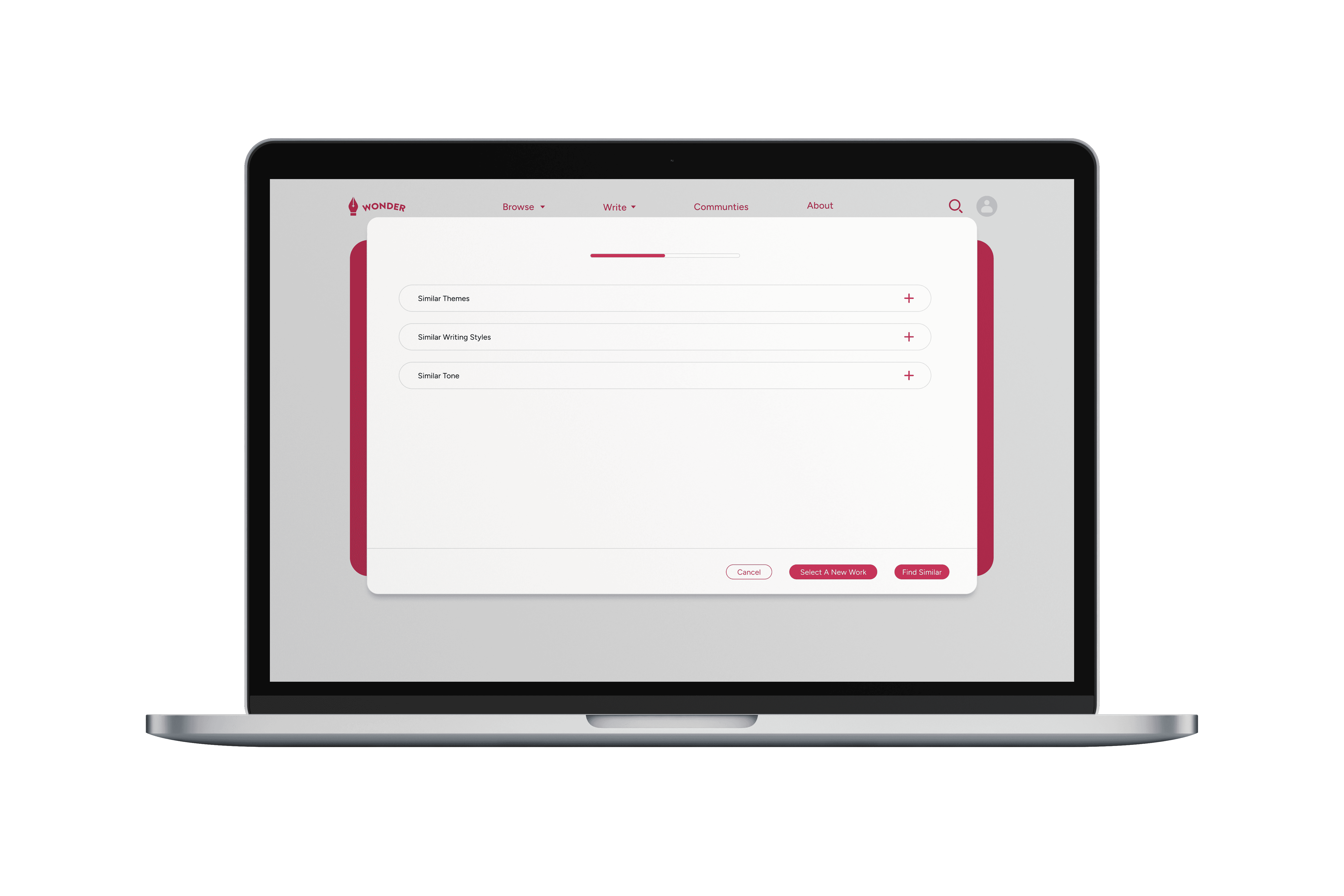 Wonder is a reading, writing, and publishing platform where users can explore a wonderland of written and published works by other users from an assortment of genres. As well as start their own worlds by writing, storing, and publishing their content while connecting with a community of readers and writers.