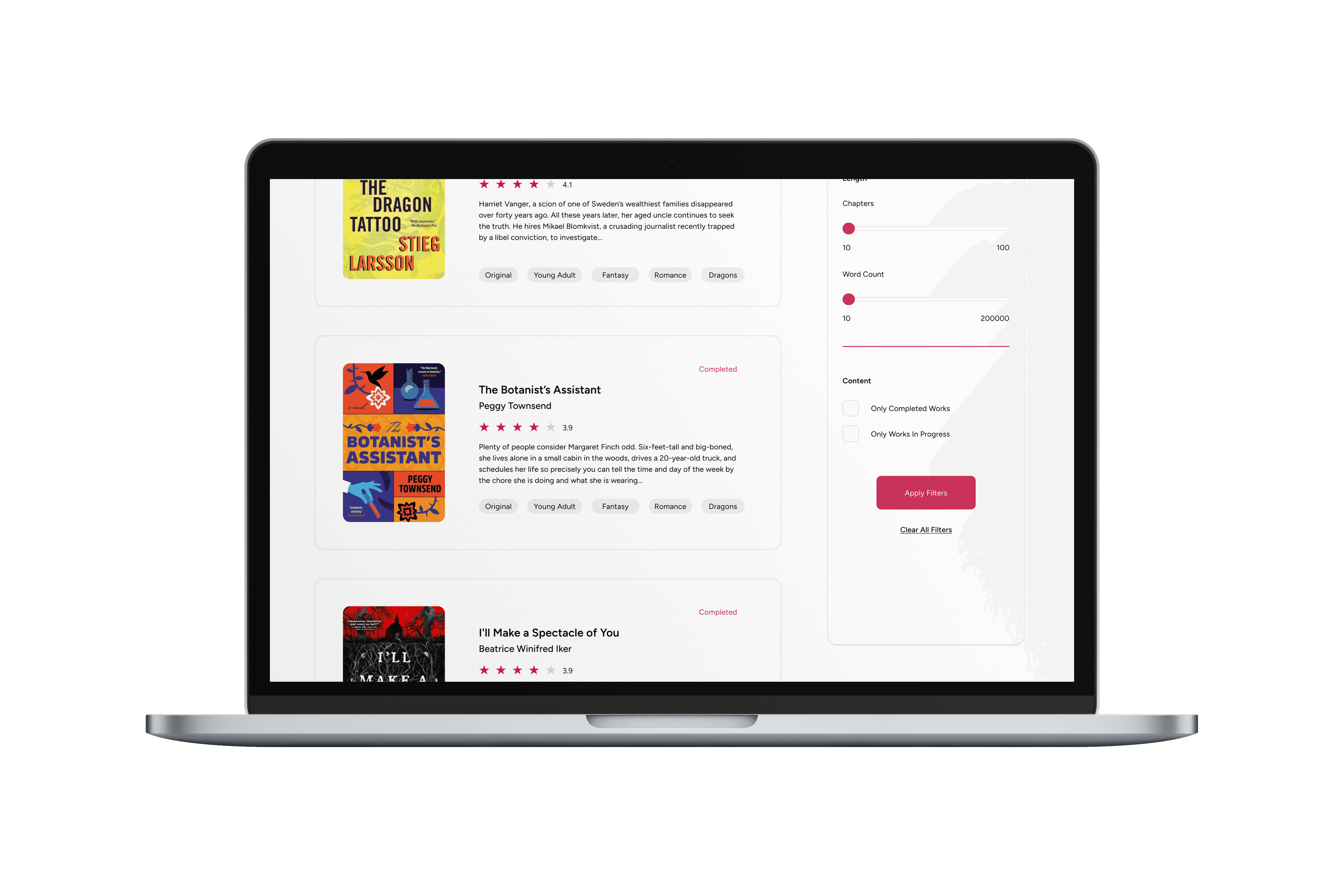 A reading, writing, and publishing platform that encourages and helps users to write and publish their own authored works as well as give out an array of both fanworks and original works from other established users to read from.